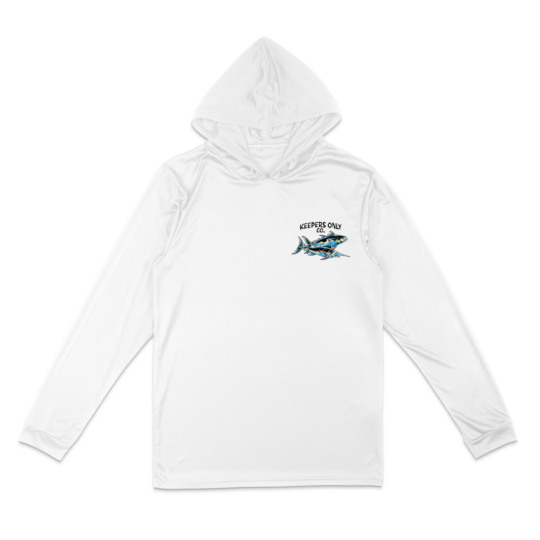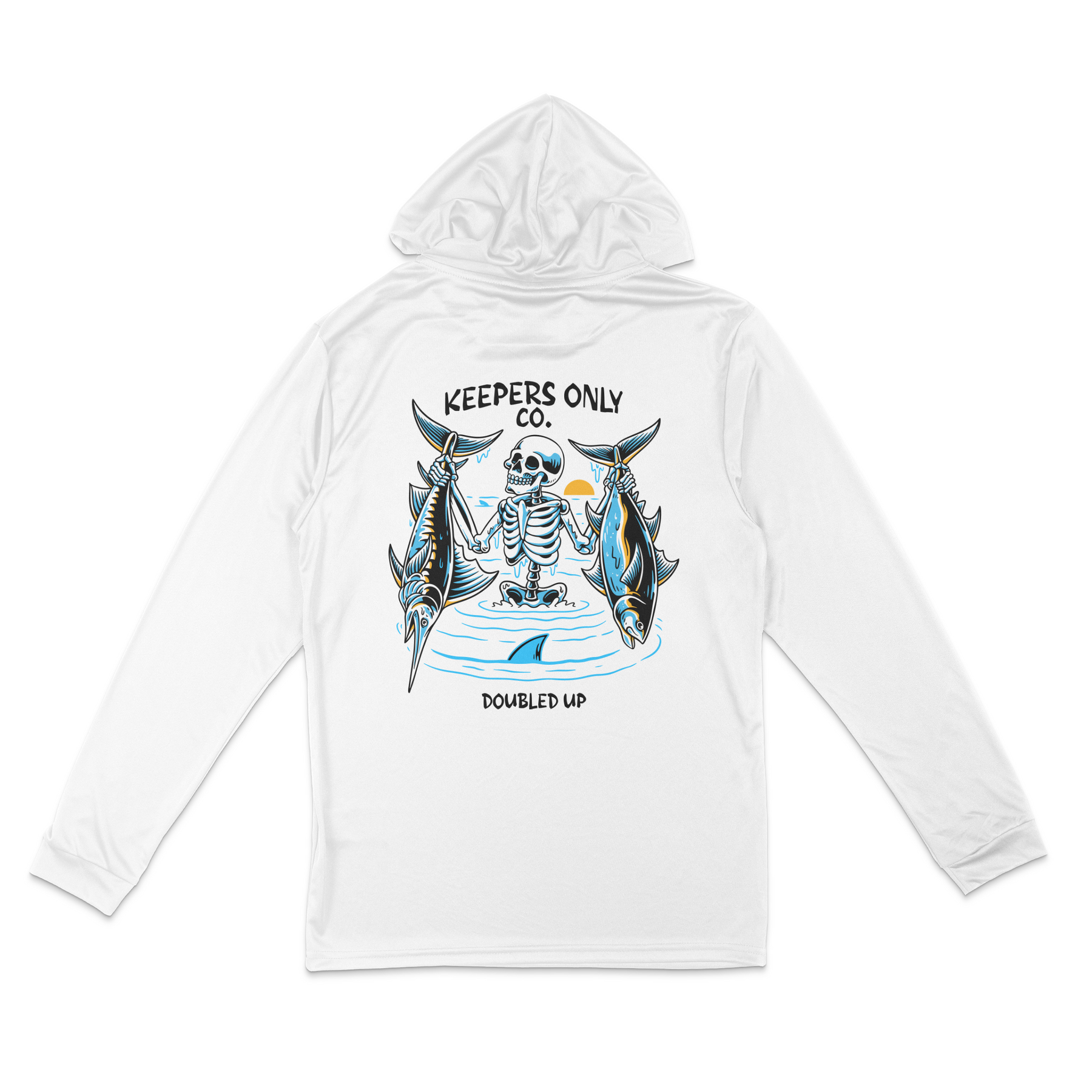 The Doubled Up Hooded Performance Long Sleeve captures one of the most electric moments in fishing—being doubled up. Rods bent, drags screaming, chaos on deck… and pure adrenaline in your veins. Whether you’re running offshore chasing tuna or battling stripers in the surf, this shirt represents the grind, the teamwork, and that split-second when everything goes off at once.